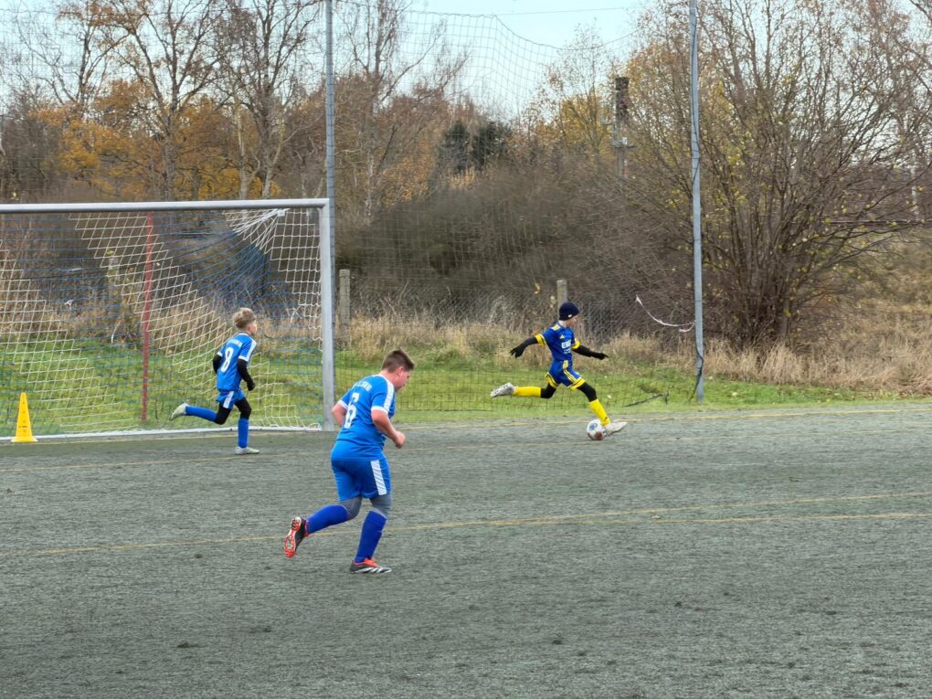 Nach schöner Kombination über die linke Seite vollendete David Yanniks Vorlage mit dem ersten Kontakt in den Winkel. Es ging jetzt nur noch in eine Richtung, wir wollten unbedingt mindestens den einen Punkt! Und so war es nur eine Minute später erneut David mit seinem zweiten Treffer des Tages, der einen gefühlvollen Heber von Louis in den Strafraum im Tor unterbrachte. In den letzten 10 Minuten nochmal Spannung auf beiden Seiten, David auf dem Weg zum Hattrick legte ihn sich leider ein Stück zu weit vor, und Yannik rettete mit einer Wahnsinns-Grätsche gegen den Ball an der Mittellinie vor dem frei durchlaufenden Gegner.